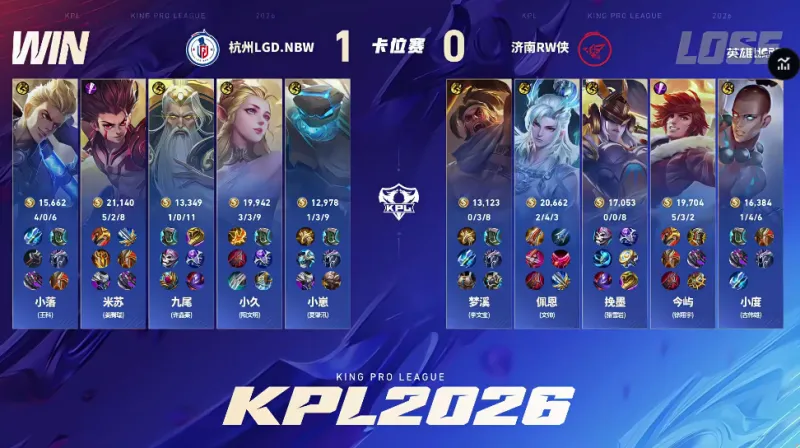 点击链接,前往讨论本场比赛选手表现>>王者荣耀职业联赛春季赛卡位赛(BO7)Game1:蓝方:杭州LGD.NBW红方:济南RW侠【Ban/Pick】蓝色方禁用:元流之子辅助 关羽 夏洛特 大司命 橘右京选用:小落狂铁 米苏哪吒 九尾姜子牙 小久艾琳 小崽盾山红色方禁用:鲁班大师 沈梦溪 不知火舞 嬴政 镜选用:小度达摩 今屿裴擒虎 挽墨女娲 佩恩...